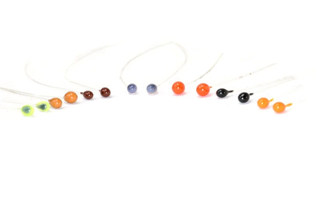 Realistic and durable shrimp and crab eyes in a variety of colors. 6 pairs per pack
