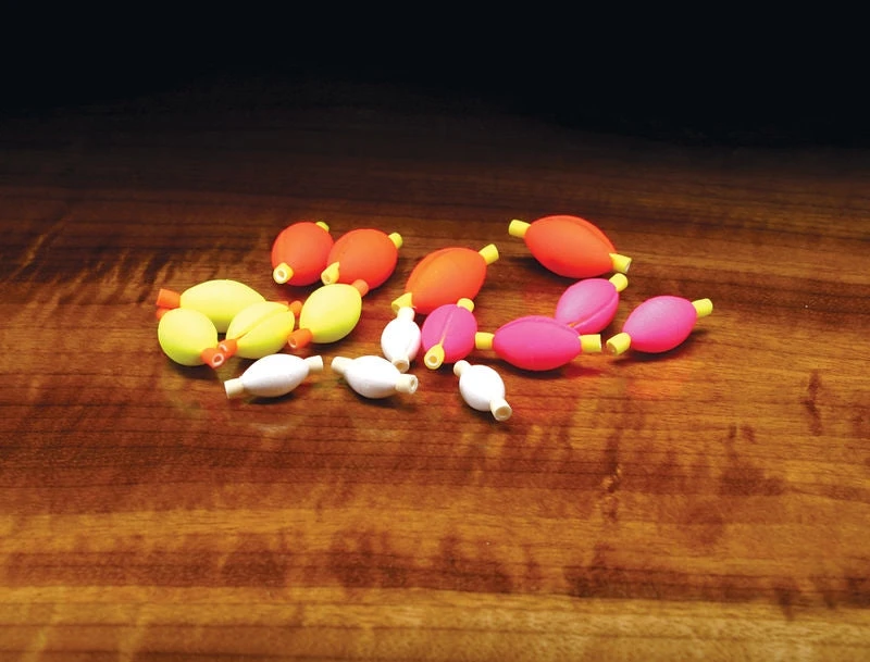 This is a very visible and buoyant football-shaped indicator that is easy to apply, move on the leader or remove, and it’s completely reusable. The football shape reduces air resistance while casting. 4 indicators per package. Available in Fl Orange, Fl Pink, Fl Yellow, White, and Bi-Visible