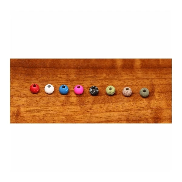 Mottled matte finish on tungsten beads. We love these! Also, mottling can add 25.7% more fishy pizzazz to your patterns.