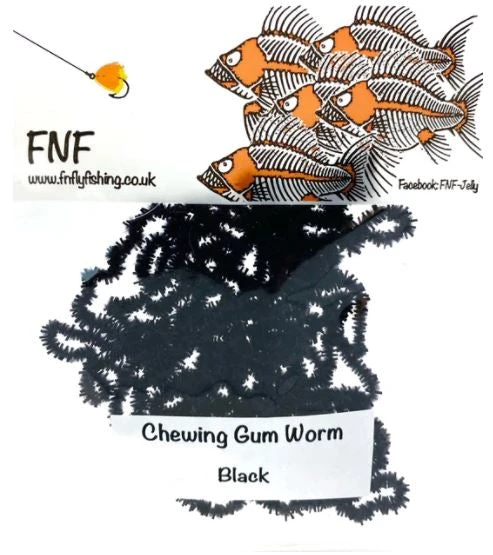 gum is buoyant so when tied in to flies it will slow down their sink rate. This has proven very deadly when creating worm patterns. The fly sinks very slowly holding in the kill box for longer. Tie in a bead if you want to fish it under a bung. The material has a soft curl to it so any movement will kick life into the worm as the curl opens out and then returns. The chewing gum material is very lumpy giving it a more life like appearance.