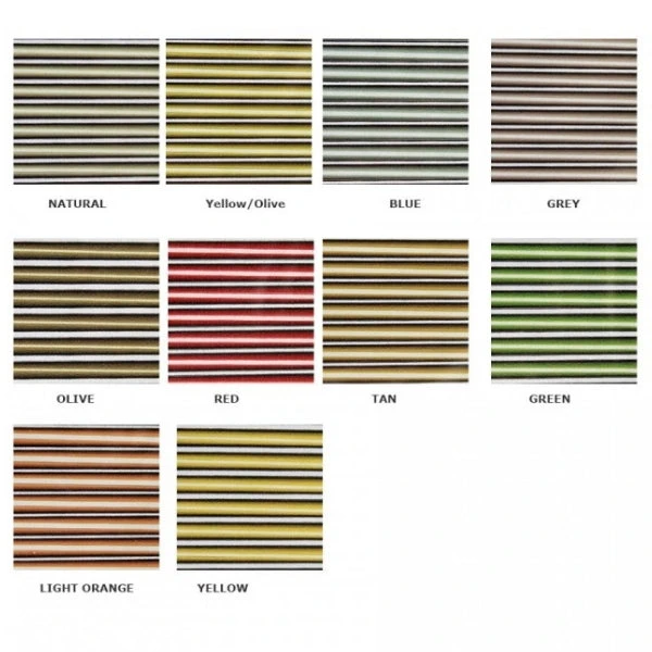 | Color | Blue, Coffee, Fl. Green, Gray, Green, Holo Natural, Light Orange, Natural, Olive, Red, Salmon, Tan, Transp. Tan, Transp. Gray, Transp. Natural, Yellow, Yellow Olive |