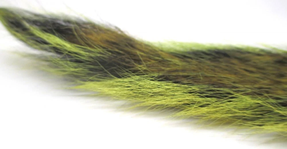 With its hollow fibres roe deer makes a superb fly tying materials, it is widely used in many patterns from Muddlers to caddis. Our picric acid dyed Roe Deer enhanced this stunning materials further with a natural olive hue to the tips of the roe deer and stunning yellow highlights. Try for tails of dry flies!