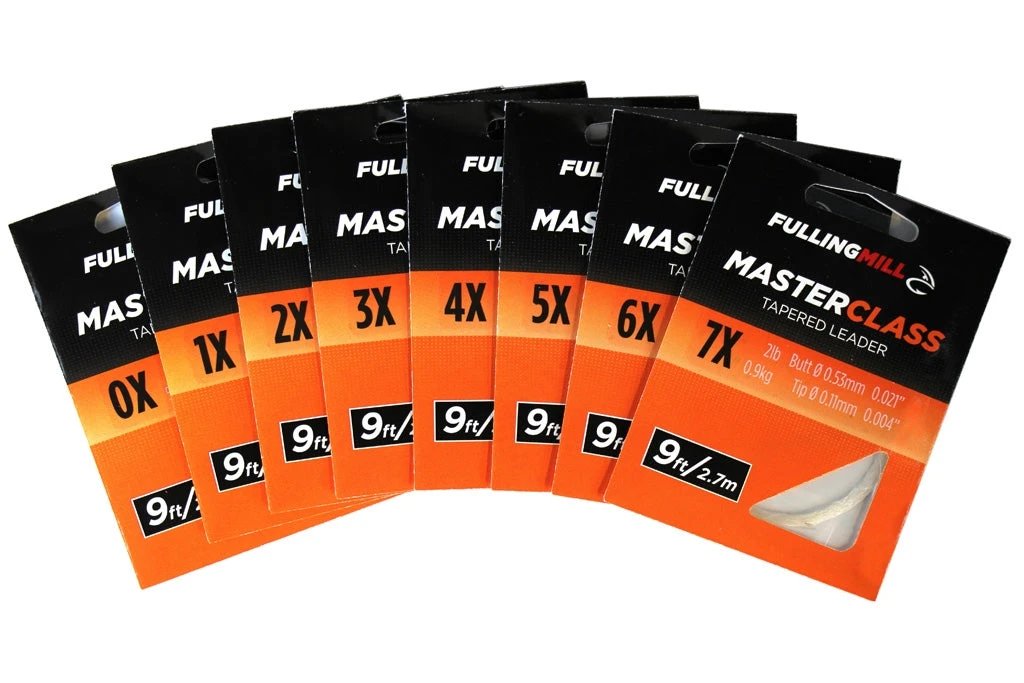 Fulling Mill Masterclass Tapered Leaders – The next generation tapered leaders formulated from advanced nylon material. The ideal addition to your fly line to help turn over any fly patterns, sizes or styles with ease.